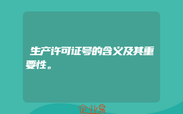 - 生产许可证号的含义及其重要性解析一、生产许可证号的含义生产许可证号是国家相关机构为了规范企业生产行为,确保企业依法合规生产,依据法律法规对符合条件的企业颁发的一种行政许可。每个企业的生产许可证号都是独一无二的,代表着企业的合法生产身份。具体