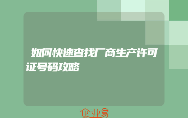 - 如何快速查找厂商生产许可证号码攻略一、了解生产许可证的基本知识在生产厂商日常运营过程中,生产许可证是一项重要的资质。它是政府为了规范企业生产行为,确保产品质量安全,保障消费者权益而颁发的法定证件。因此