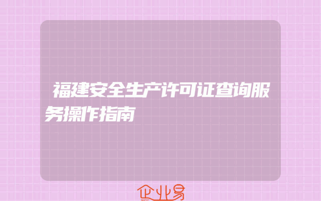 - 福建安全生产许可证查询服务操作指南安全生产许可证是企业合法生产经营的重要凭证之一,福建省为加强安全生产管理,提供了便捷的安全生产许可证查询服务。以下是福建安全生产许可证查询服务的操作指南,旨在帮助用户快速准确地完成查询。一、查询平台