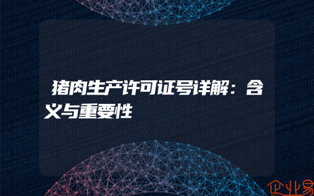 - 猪肉生产许可证号详解:含义与重要性一、猪肉生产许可证号的含义猪肉生产许可证号是经国家相关部门审核合格后颁发的合法证件编号。它代表着猪肉生产企业的合法身份和经营资质,是规范生猪养殖、屠宰、加工、销售等环节的重要保障。许可证号包含了企业的基本信