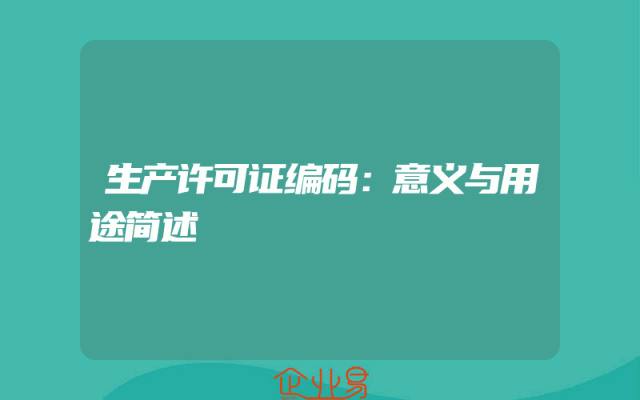 - 生产许可证编码:意义与用途简述