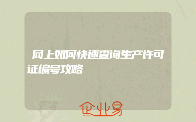 - 快速查找商品生产许可证编号攻略随着市场监管的不断加强,商品生产许可证成为了企业合法生产的必备证件。对于消费者和企业来说,了解如何快速查找商品生产许可证编号显得尤为重要。本文将为您详细介绍几个关键步骤和注意事项