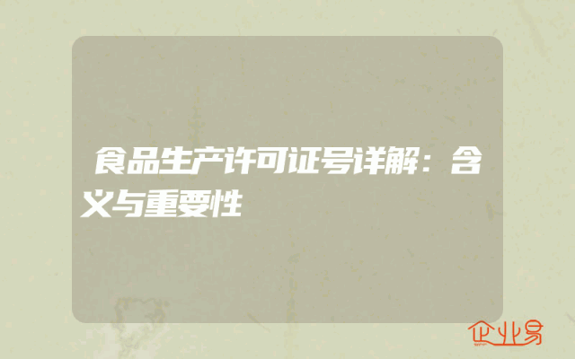 - 食品生产许可证号详解:含义与重要性一、食品生产许可证号的含义食品生产许可证号,是国家为规范食品生产行业,确保食品安全而设立的一项重要制度。它是食品生产企业合法生产的凭证,是消费者选购安全食品的参考依据。这个许可证号包含了企业的基本信息和生产