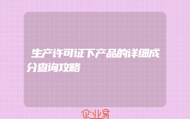 - 生产许可证下产品的详细成分查询攻略一、了解生产许可证在中国,生产许可证是工业产品生产许可制度的一种重要体现,由国家相关部门颁发,确保产品的安全性和合规性。当您想要查询某一产品的详细成分时,了解该产品的生产许可证是非常重要的一步。因为只有拥有