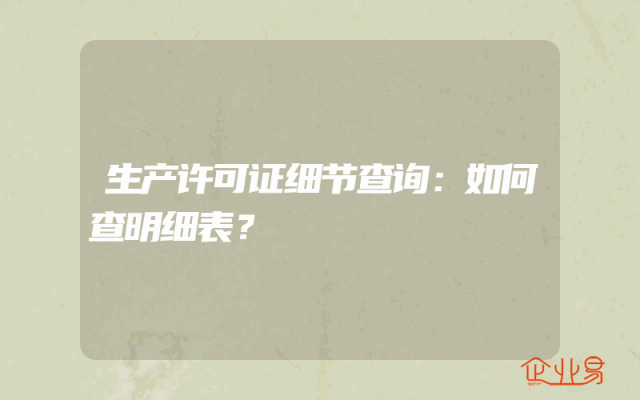 - 生产许可证细节查询:如何查明细表一、了解生产许可证生产许可证是国家为加强行业管理、规范企业生产行为而颁发的一种证书。企业只有符合国家的产业政策和相关标准规定,经过相关部门的审核批准,才能获得生产许可证。作为企业或个人,在查询生产许可