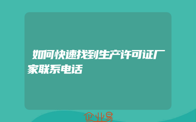 - 如何快速找到生产许可证厂家联系电话一、明确需求与目的在寻找生产许可证厂家联系电话之前,首先需要明确自己的需求和目的。是为了采购、合作还是咨询相关信息?了解目的后,可以更有针对性地展开搜索,提高寻找的效率。二、多渠道搜索现在的信息社会,我们可