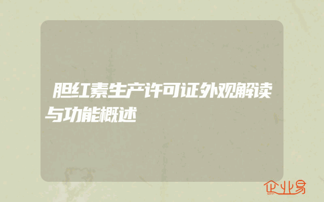 - 胆红素生产许可证外观解读与功能概述一、许可证外观解读胆红素生产许可证的外观通常由政府相关部门统一设计,其视觉形象严谨、规范。首先映入眼帘的,往往是醒目的国徽或相关政府标志,体现了许可证的权威性和法律效应。接着是许可证的名称,清晰明确标明“胆