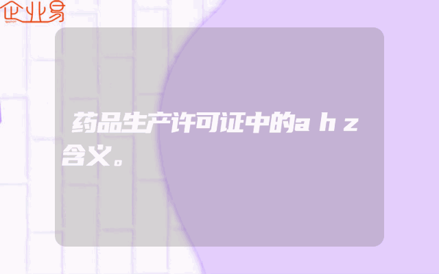 - 药品生产许可证中的AHZ含义解析一、药品生产许可证概述药品生产许可证是药品生产企业合法生产和销售的凭证,由国家药品监督管理部门根据相关规定核发。许可证中包含多个要素,其中AHZ作为一个特定的编码,蕴含着重要的信息意义。二、AHZ编码的含义与