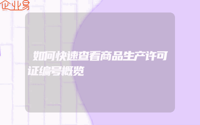 - 如何快速查看商品生产许可证编号概览一、了解生产许可证的重要性在当今商业环境中,确保商品的合法性和质量是至关重要的。生产许可证是国家对生产企业的一种资质认证,证明企业具备生产特定商品的能力和条件。作为消费者或企业相关人员,了解如何快速查看商品