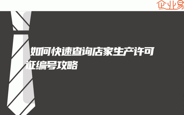 - 如何快速查询店家生产许可证编号攻略一、了解生产许可证的重要性在现代商业环境中,生产许可证是评价企业合法性和产品质量的重要指标之一。随着市场规范化进程的不断推进,越来越多的消费者和企业开始重视店家生产许可证的查询。二、选择查询途径随着互联网技
