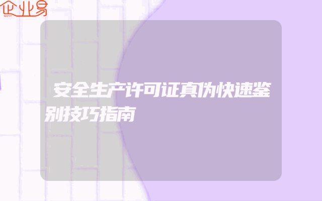 - 安全生产许可证真伪快速鉴别技巧指南一、了解安全生产许可证的基本知识安全生产许可证作为企业从事生产经营活动的法定凭证,其真伪直接关系到企业的合法性和安全生产能力。因此,掌握安全生产许可证的基本知识是快速鉴别真伪的前提。企业需要了解许可证的颁发