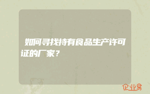 - 如何寻找持有食品生产许可证的厂家?一、明确需求与目标在寻找持有食品生产许可证的厂家之前,首先要明确自己的需求与目标。了解所要生产的食品种类、生产规模、质量控制标准等关键要素,从而确保找到符合要求的厂家。可以通过市场调研,了解行业内的生产状况