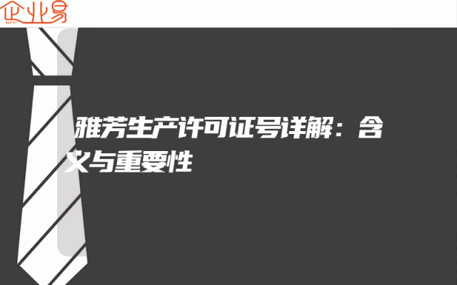 - 雅芳生产许可证号详解:含义与重要性一、雅芳生产许可证号的含义雅芳生产许可证号是企业取得政府批准进行化妆品生产的合法凭据。该许可证号代表了企业经过相关部门的审核,符合化妆品生产的标准和要求,具备生产化妆品的资质。雅芳生产许可证号的详细内容包括