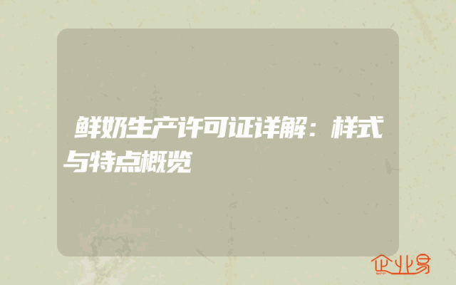 - 鲜奶生产许可证详解:样式与特点概览一、许可证样式介绍鲜奶生产许可证是由相关政府部门颁发,以证明奶畜养殖和乳品加工企业符合国家和地方规定的生产条件和卫生标准的证件。其样式通常包含以下几部分:证件名称、持证