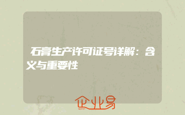 - 石膏生产许可证号详解:含义与重要性一、石膏生产许可证号的含义石膏生产许可证号是中国政府对从事石膏生产的企业进行管理和规范的一种凭证。这个许可证号代表着企业经过国家相关部门的审核,被授权合法生产和经营石膏及其相关产品。每个石膏生产企业