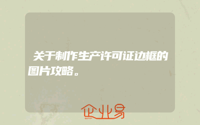 - 制作生产许可证边框的图片攻略一、了解生产许可证边框要求在开始制作生产许可证边框之前,首先需要了解相关的要求和标准。生产许可证边框通常由政府相关部门制定统一规范,包括边框的颜色、尺寸、字体等细节。通过查阅相关政策和规定,可以确保你的制