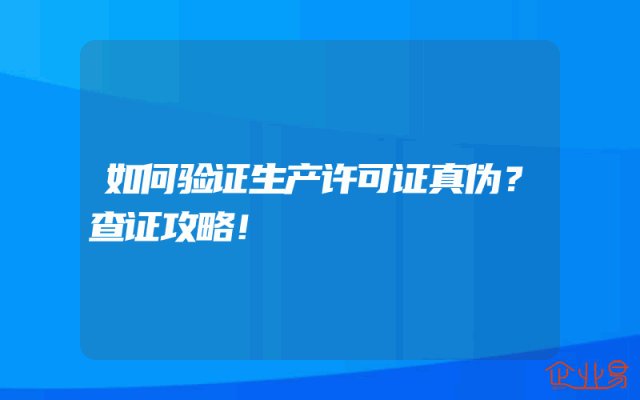 - 如何验证生产许可证真伪?查证攻略!一、了解生产许可证基本知识在生产型企业运营过程中,生产许可证是国家对企业生产能力的法定认可,也是企业合法运营的重要凭证。验证生产许可证真伪是确保企业合法运营的重要一环。对于不熟悉的企业或即将开展合作的企业,