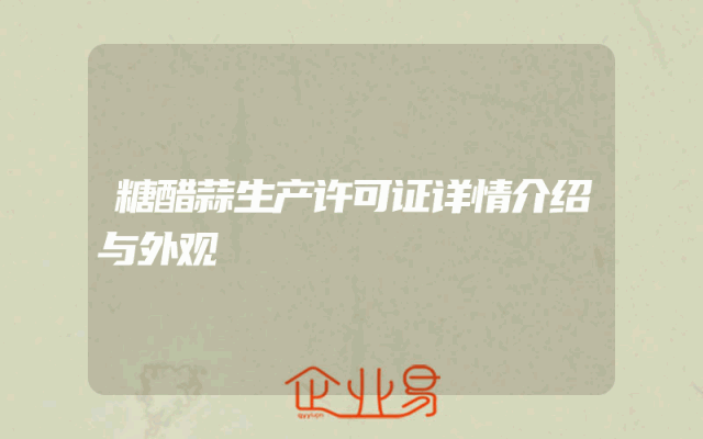 - 糖醋蒜生产许可证详情介绍与外观解析一、糖醋蒜生产许可证概述糖醋蒜作为一种常见的食品,其生产过程需要符合相关法规和标准。为了保障食品质量和安全,生产企业必须获得相应的生产许可证。本文将对糖醋蒜生产许可证的详情进行介绍,并对外观进行解析。二、生