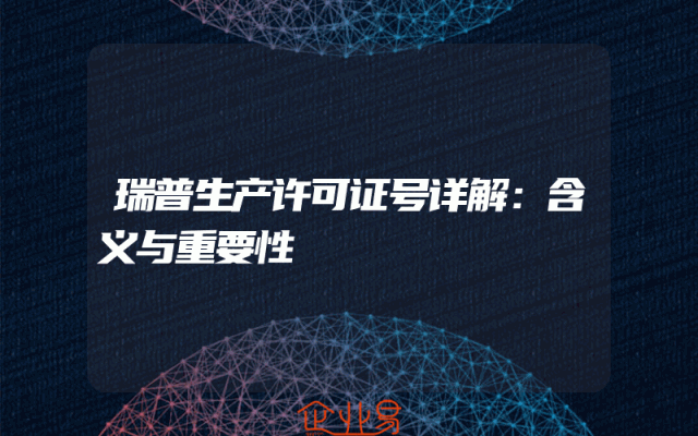 - 瑞普生产许可证号详解:含义与重要性一、瑞普生产许可证号的含义瑞普生产许可证号是中国相关监管机构授予企业的一个重要资质标识。在生产某些特定产品或从事某些行业前,企业需要通过一系列的审核和评估,获得相应的许可证明,其中就包括了瑞普生产许可证号。