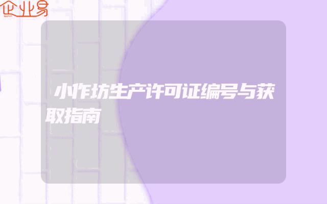 - 小作坊生产许可证编号解析与获取指南一、小作坊生产许可证的重要性在当今社会,随着经济的繁荣发展,小作坊式企业逐渐崭露头角。对于这些小作坊而言,获得生产许可证是十分重要的。这不仅意味着您的企业符合相关法规要求,也代表了您的产品或服务得到了官方的