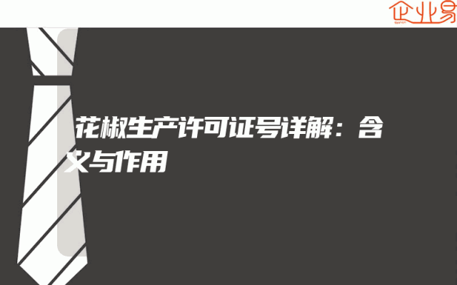 - 花椒生产许可证号详解:含义与作用一、了解花椒生产许可证号的重要性随着食品安全问题受到公众高度关注,企业在生产经营过程中都需要遵循一系列法律法规,以保障消费者权益。在花椒行业,持有有效的生产许可证号更是企业合法经营的基石。本文将详细解