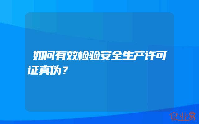 - 如何有效检验安全生产许可证真伪?一、引言随着安全意识的不断提高,企业安全生产管理变得日益重要。而安全生产许可证作为企业合法开展生产经营的必要条件之一,其真伪直接关系到企业的合规性与安全生产能力。因此,如何有效检验安全生产许可证真伪成为一项不