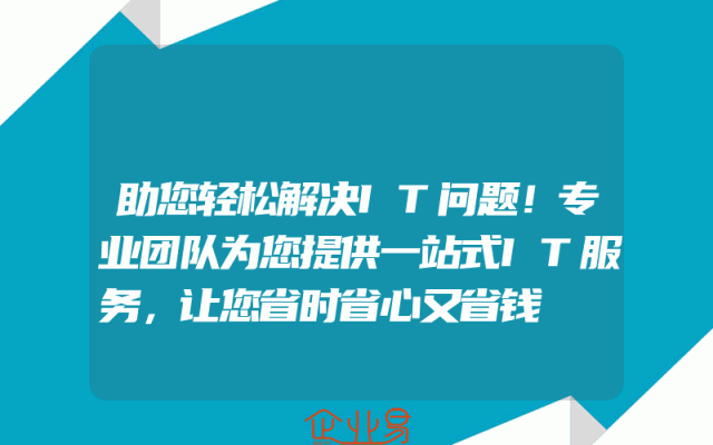 - 助您轻松解决IT问题!专业团队为您提供一站式IT服务,让您省时省心又省钱
