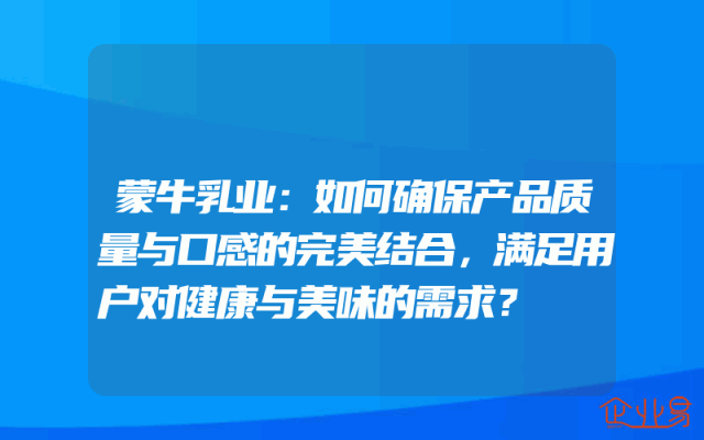 - 蒙牛乳业:如何确保产品质量与口感的完美结合,满足用户对健康与美味的需求?