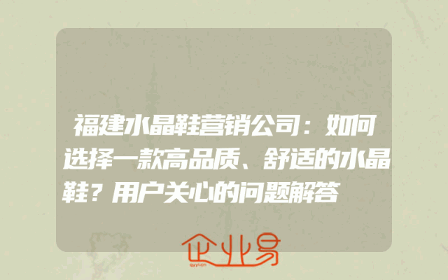 - 福建水晶鞋营销公司:如何选择一款高品质、舒适的水晶鞋?用户关心的问题解答