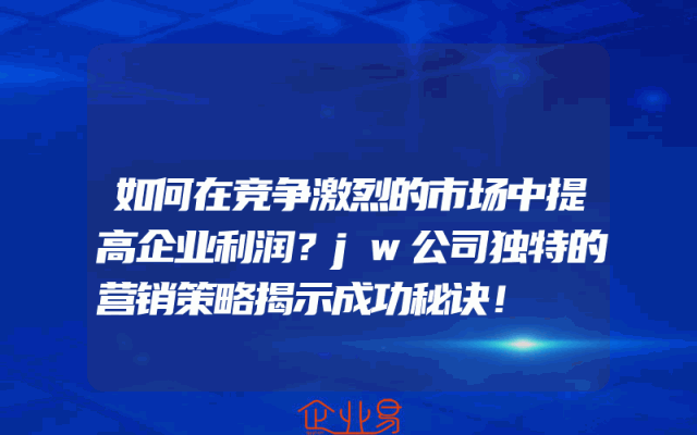- 如何在竞争激烈的市场中提高企业利润?jw公司独特的营销策略揭示成功秘诀!