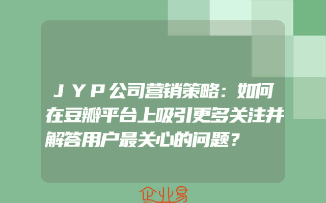 - JYP公司营销策略:如何在豆瓣平台上吸引更多关注并解答用户最关心的问题?