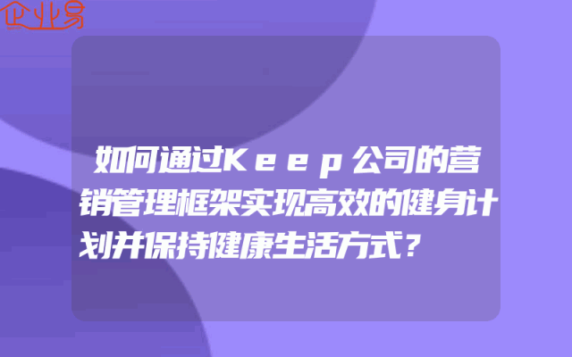 - 如何通过Keep公司的营销管理框架实现高效的健身计划并保持健康生活方式?在当今快节奏的生活中,越来越多的人开始关注健康和健身。然而,很多人在尝试制定健身计划时遇到了困难。为了帮助您实现高效的健身计划并保持健康的生活方式,本文将介绍如何利用K