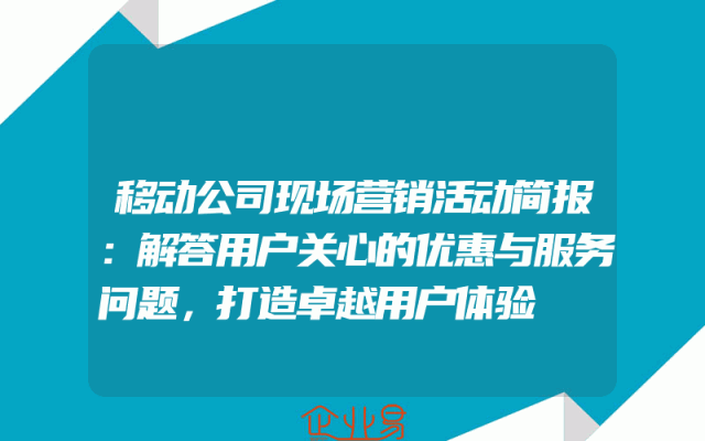 - 移动公司现场营销活动简报:解答用户关心的优惠与服务问题,打造卓越用户体验