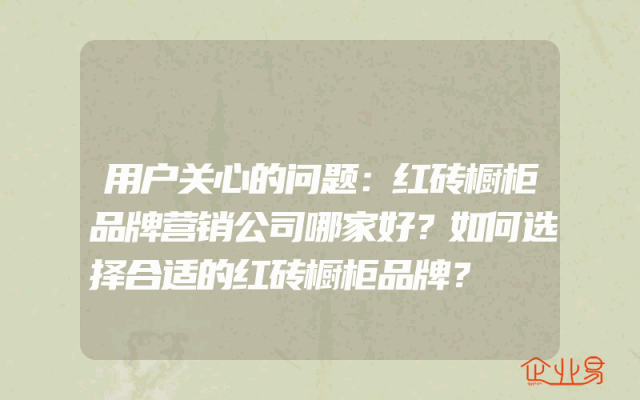 - 用户关心的问题:红砖橱柜品牌营销公司哪家好?如何选择合适的红砖橱柜品牌?