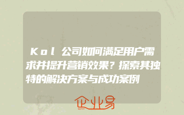 - Kol公司如何满足用户需求并提升营销效果?探索其独特的解决方案与成功案例在当今竞争激烈的市场环境中,企业需要不断地寻找创新的解决方案来满足用户的需求并提升营销效果。Kol公司就是这样一家成功的企业,它通过独特的解决方案和成功案例,为用户提供
