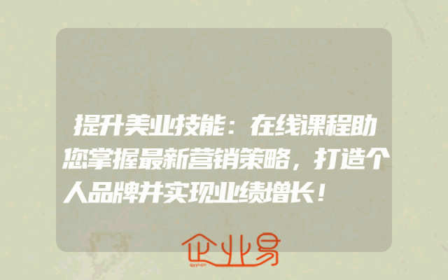 - 提升美业技能:在线课程助您掌握最新营销策略,打造个人品牌并实现业绩增长!在当今竞争激烈的美业市场中,提升自己的技能和知识已经成为了每个从业者必备的素质。为了帮助您更好地应对市场的挑战,本文将向您介绍一些在线课程,这些课程将帮助您掌握最新的营