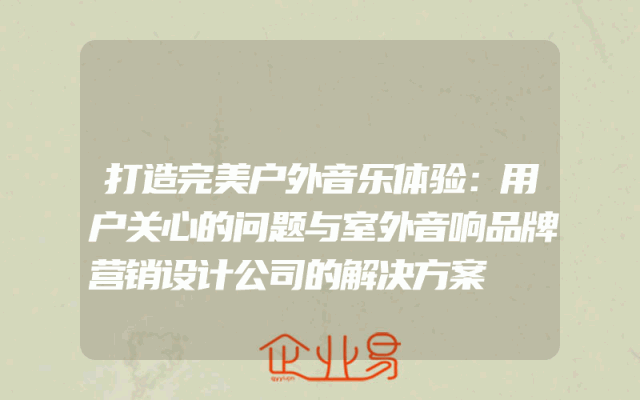 - 打造完美户外音乐体验:用户关心的问题与室外音响品牌营销设计公司的解决方案在现代社会中,户外音乐体验已经成为了人们休闲娱乐的重要方式之一。然而,如何打造一个完美的户外音乐体验却成为了许多人关心的问题。本文将从用户的角度出发,探讨户外音乐体验中