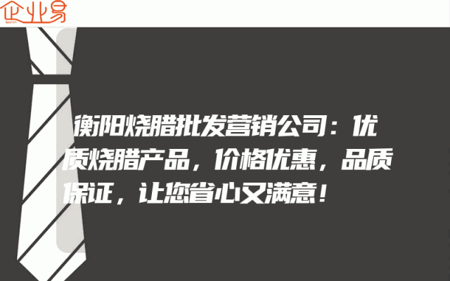 - 衡阳烧腊批发营销公司:优质烧腊产品,价格优惠,品质保证,让您省心又满意!在快节奏的现代生活中,人们对于美食的需求不仅仅停留在味道上,更注重健康、营养和口感。衡阳烧腊批发营销公司正是应运而生,为广大消费者提供优质、美味的烧腊产品。我们的产品不
