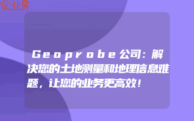 - Geoprobe公司:解决您的土地测量和地理信息难题,让您的业务更高效!在当今快速发展的数字化时代,地理信息的准确性和管理变得越来越重要。对于企业而言,准确的土地测量和地理信息管理可以提高工作效率,降低成本,并为企业决策提供有力支持。为了满