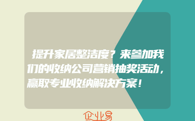 - 提升家居整洁度?来参加我们的收纳公司营销抽奖活动,赢取专业收纳解决方案!