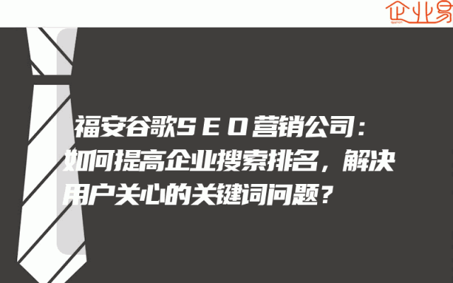 - 福安谷歌SEO营销公司:如何提高企业搜索排名,解决用户关心的关键词问题?