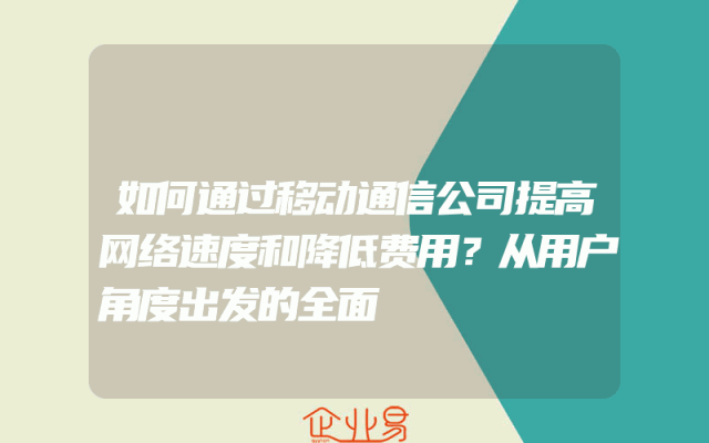 - 如何通过移动通信公司提高网络速度和降低费用?从用户角度出发的全面