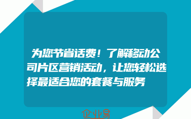 - 为您节省话费!了解移动公司片区营销活动,让您轻松选择最适合您的套餐与服务