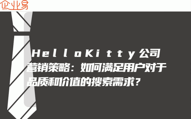 - HelloKitty公司营销策略:如何满足用户对于品质和价值的搜索需求?随着互联网的普及,消费者对于商品的需求越来越多样化,他们不再仅仅关注价格,更加注重产品的品质和价值。作为一家知名的企业服务公司,HelloKitty也需要不断调整自己的