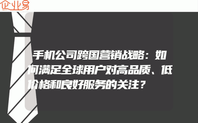 - 手机公司跨国营销战略:如何满足全球用户对高品质、低价格和良好服务的关注?随着全球化的推进,手机公司面临着来自世界各地的竞争。为了在激烈的市场竞争中脱颖而出,手机公司需要制定有效的跨国营销战略,以满足全球用户对高品质、低价格和良好服务的需求。