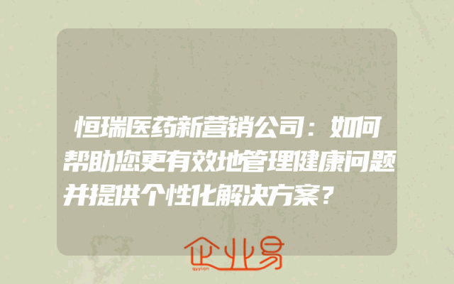 - 恒瑞医药新营销公司:如何帮助您更有效地管理健康问题并提供个性化解决方案?