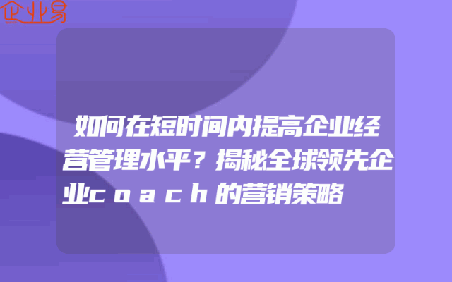 - 如何在短时间内提高企业经营管理水平?揭秘全球领先企业coach的营销策略