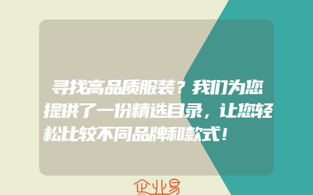 - 寻找高品质服装?我们为您提供了一份精选目录,让您轻松比较不同品牌和款式!在如今的时尚世界中,寻找高品质的服装已经成为了许多消费者的需求。无论是为了满足日常穿着的需求,还是为了参加特殊场合,我们都希望能够找到那些既舒适又时尚的衣服。然而,面对