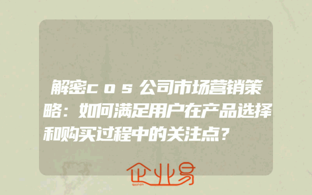 - 解密cos公司市场营销策略:如何满足用户在产品选择和购买过程中的关注点?