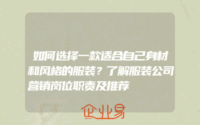 - 如何选择一款适合自己身材和风格的服装?了解服装公司营销岗位职责及推荐